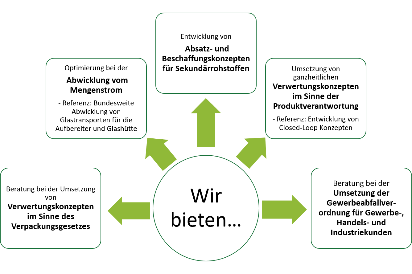 Advice on questions of waste optimization and process optimization Advice through experience and competence - that's what sets us apart - for site optimization, for tender management for disposal and recycling services and for optimizing the licensing of packaging and its recycling.