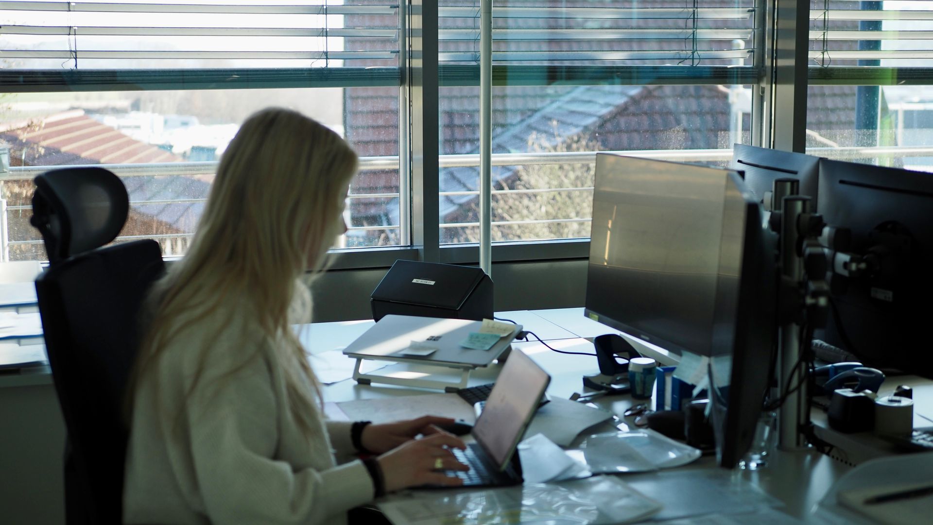 Die Arbeitsplätze in unseren Büros sind mit modernen Techniken ausgestattet. Die großen Fenster gewährleisten den gesamten Arbeitstag über ein lichtdurchflutetes Ambiente.